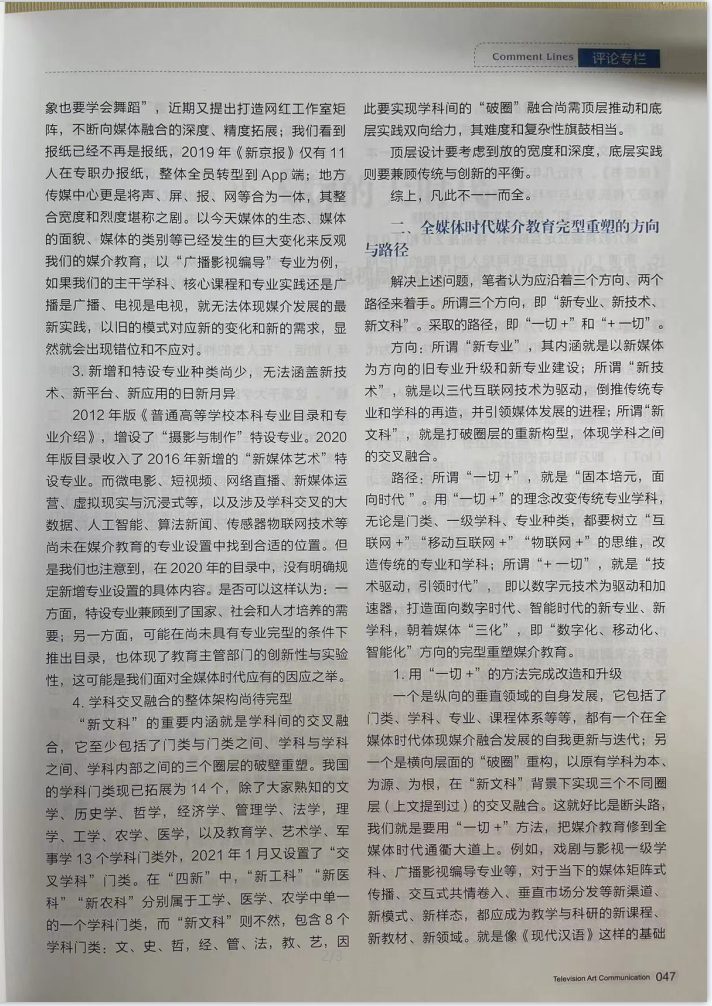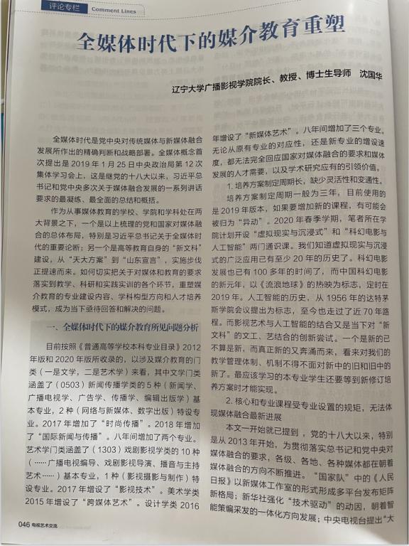 广播影视学院在峰会特刊《电视艺术交流》上发表论文《全媒体时代下的媒介教育重塑 》,探讨如何切实把国家关于对媒体和教育的要求落实到教学科研和实践实训的各个环节,重塑媒介教育的专业建设内容、学科构型方向和人才培养模式,用媒介教育回应好国家、社会和人才培养的需要。