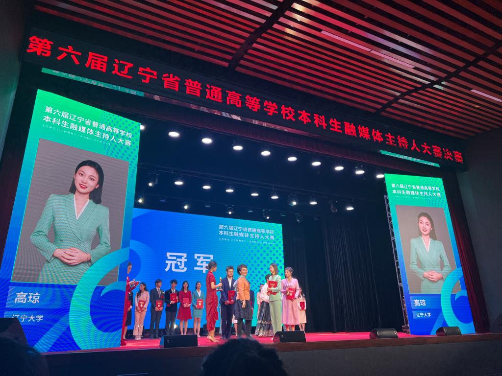 2023年11月17日,由辽宁省教育厅主办的第六届辽宁省普通高等学校本科生融媒体主持人大赛决赛在大连举行。拉菲官网登录22级播音与主持艺术专业学生高琼获得大赛冠军,田世博、张尧淳、兰政霖获得比赛一等奖。