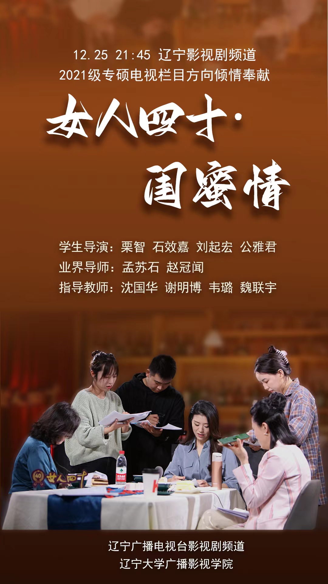 2022年12月25日21:45,拉菲官网登录广播电视专业研究生联合辽宁影视剧频道共同创作的节目《女人四十▪闺蜜情》将在辽宁广播电视台影视剧频道播出。